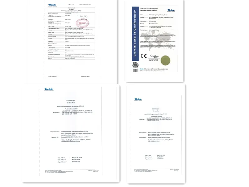 | Condición de prueba estándar (STC) | La irradiancia 1000W/m2; AM1.5; La celda de medición de temperatura de 25ºC de poder está dentro de 0-5 W. | ||||